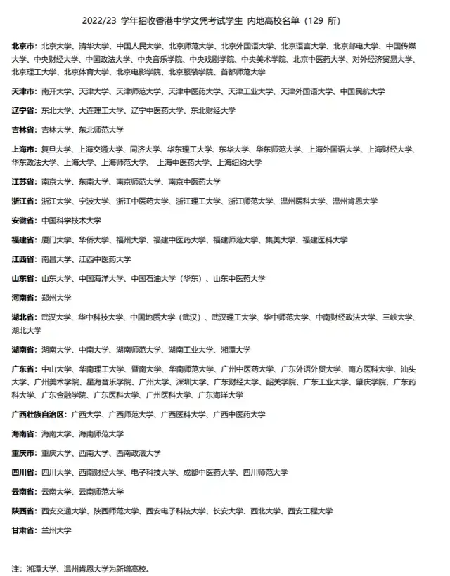 港籍生除了可以申請11所香港本地高校及280多所國際高校之外,持有回鄉證的港籍生,可憑借DSE成績免試申請內地129所大學(含「雙一流大學」)。而內地生可以用DSE成績申請香港本地及海外高校,但是不能申請內地高校(內地考生僅能通過高考進入內地高校)。