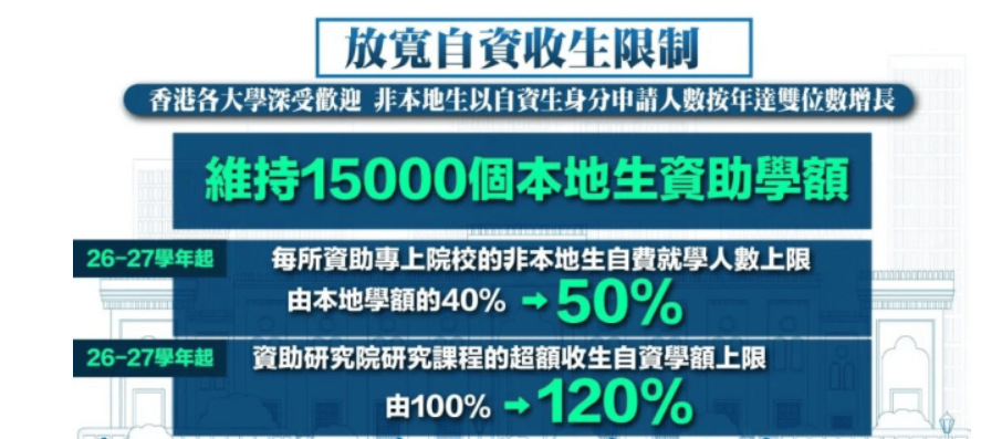 ● 香港正以最大誠意歡迎全球優才。今學年起,八大非本地本科生取錄上限由20%放寬至40%,今年9月更將進一步提升至50%,且非本地生為自費就讀,不佔用本地1.5萬個第一年學士學位,既保障本地生權益,又為全球優秀學生打開機會之門。